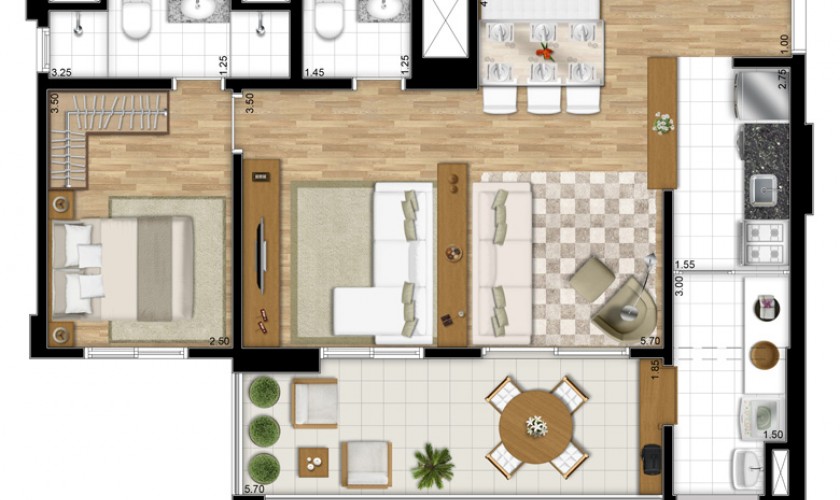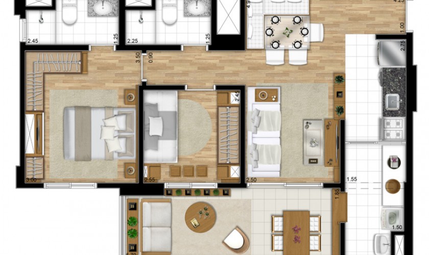 Apartamentos de 68 m2 - 2 dorms (1 suíte)
